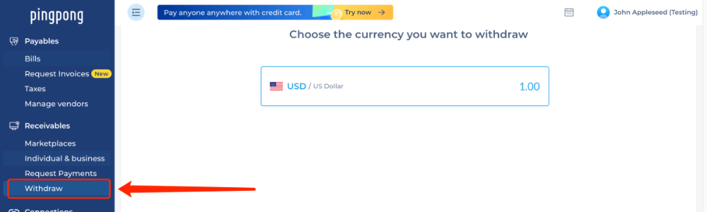 Step 1: In your PingPong account, select “Linked accounts” and then click “Add a new bank account”. From there select your bank account type. You can select personal account or company account.